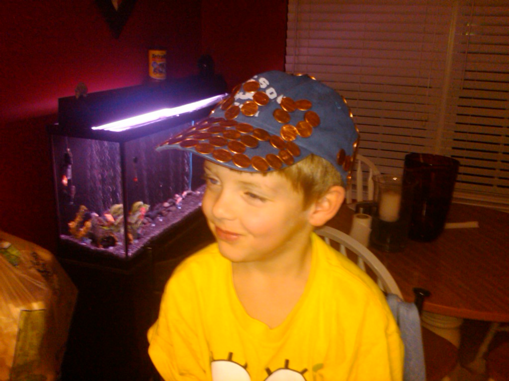 Today is 100th day of Kindergarten. Kids learning about the number 100 all day. Had to attach 100 things to a hat for Ash to wear in the 100 parade.